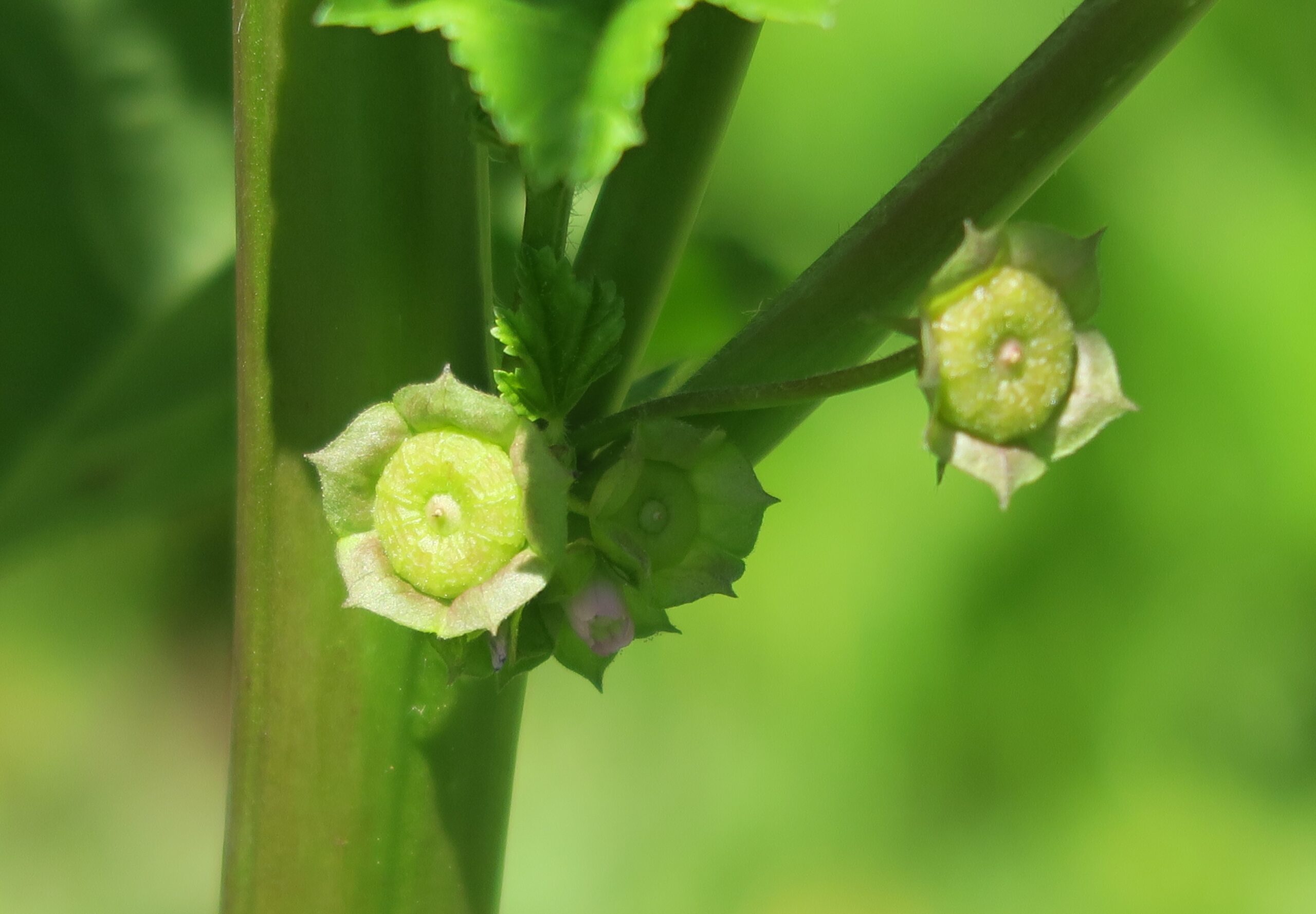 The round flat fruits of mallow, which give it the name “cheeseweed”